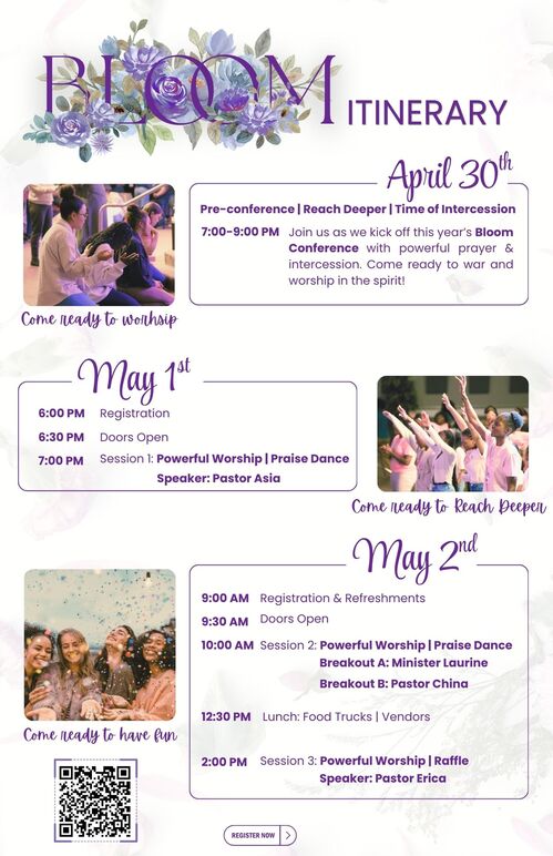 If you have been looking for an opportunity to dig deeper into the word of God and worship with like-minded sisters in Christ, don’t miss our annual Bloom Women’s Conference. Every year, women from all over the region come together for an amazing weekend to be engaged, equipped, empowered, and encouraged in the word of God.